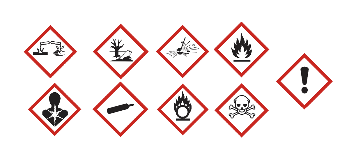 Look for the hazard symbols